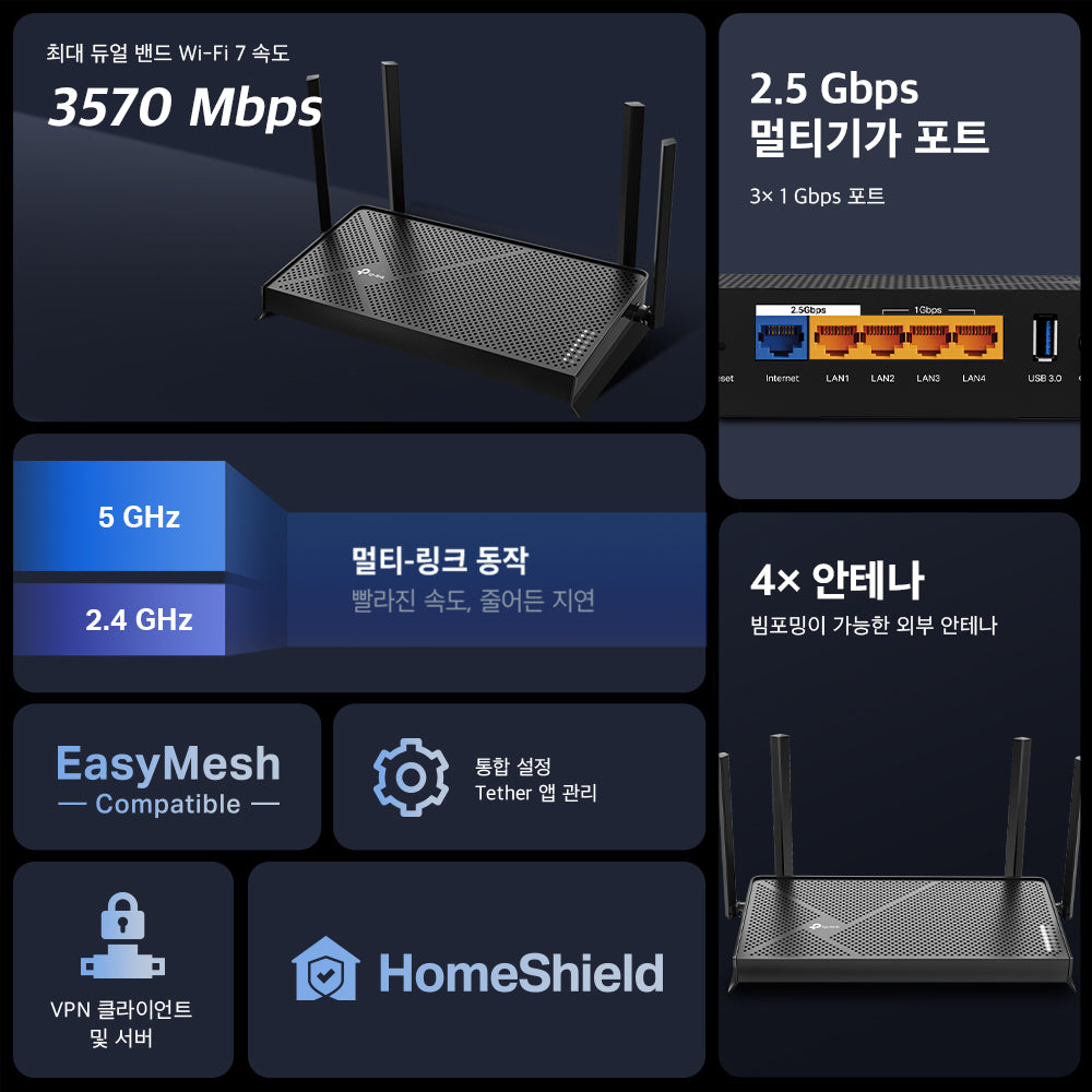 - 다양한 설치 방법을 지원하는 컴팩트 디자인: 똑바로 세우거나 뒤집어도 쓸 수 있고, 책상 거치, 벽면 설치, 천장 설치, 기둥 설치를 지원합니다.
