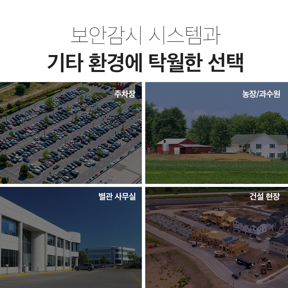 - 회전형: 360º 수평 범위와 146º 수직 범위로 각도를 조절해 더 넓은 영역을 모니터링할 수 있습니다.