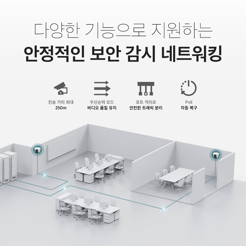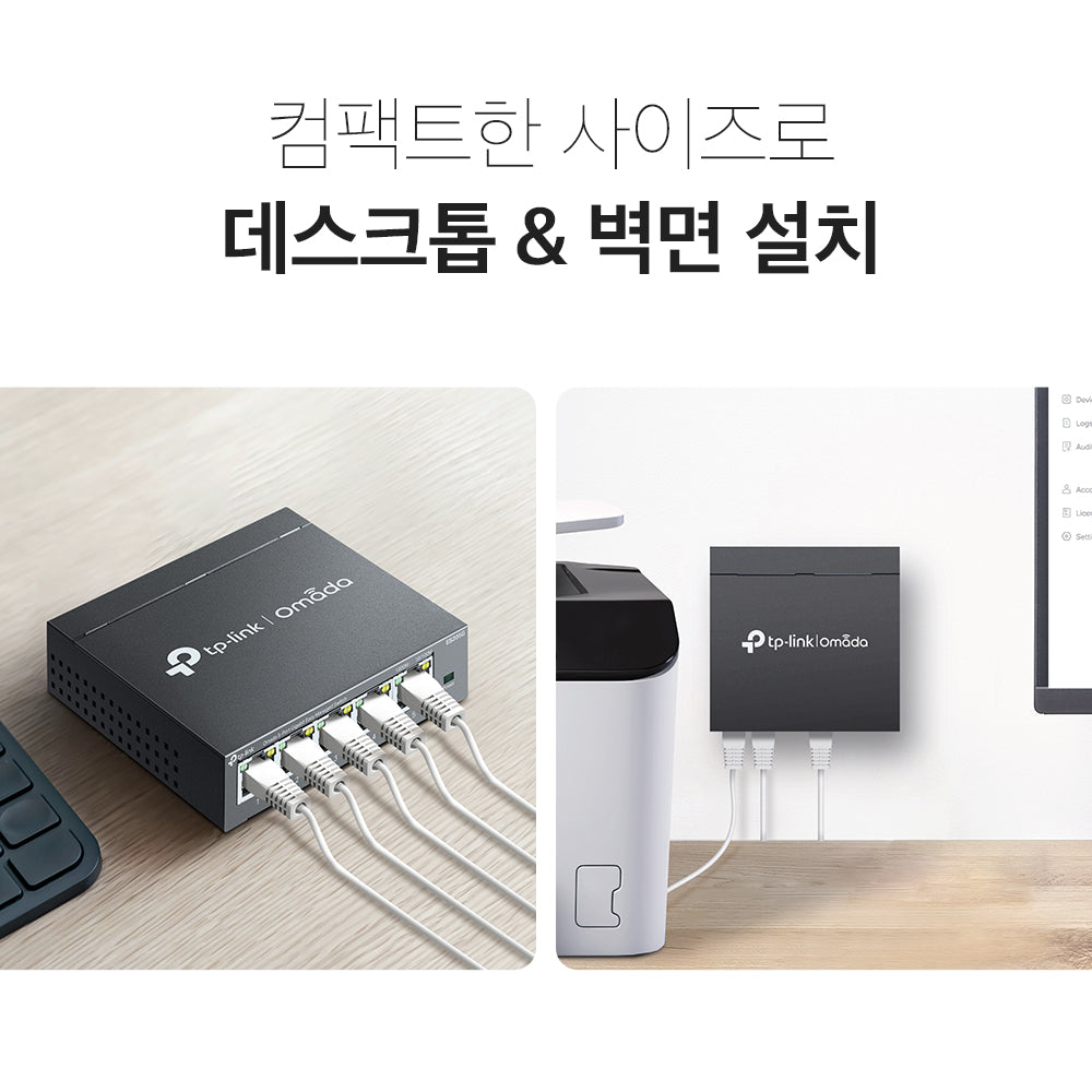 - 다양한 설치 방법을 지원하는 컴팩트 디자인: 똑바로 세우거나 뒤집어도 쓸 수 있고, 책상 거치, 벽면 설치, 천장 설치, 기둥 설치를 지원합니다.