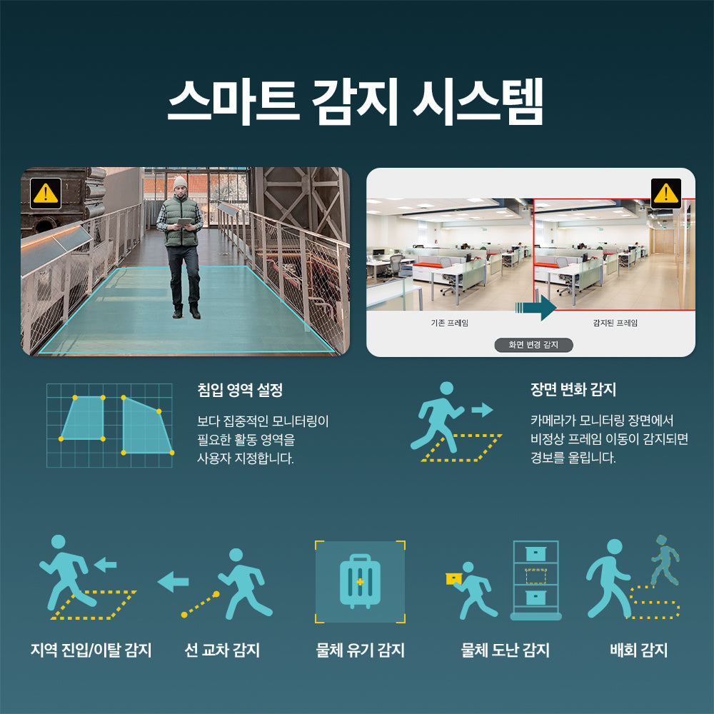 - 소리 및 조명 경보: 소리와 조명 경보로 주의를 끌어 침입자를 쫓아냅니다.