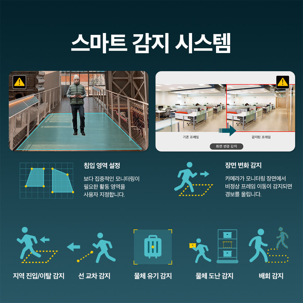 - 소리 및 조명 경보: 소리와 조명 경보로 주의를 끌어 침입자를 쫓아냅니다.