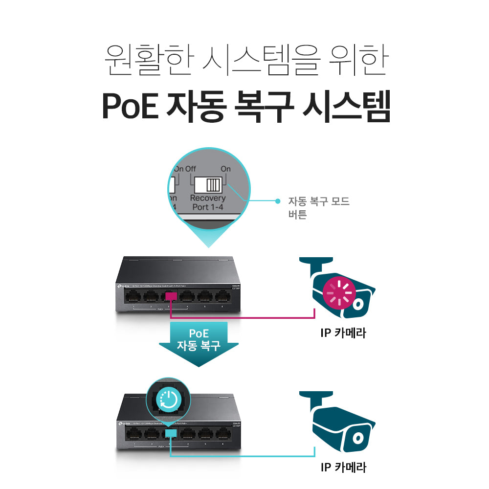 - 다양한 설치 방법을 지원하는 컴팩트 디자인: 똑바로 세우거나 뒤집어도 쓸 수 있고, 책상 거치, 벽면 설치, 천장 설치, 기둥 설치를 지원합니다.