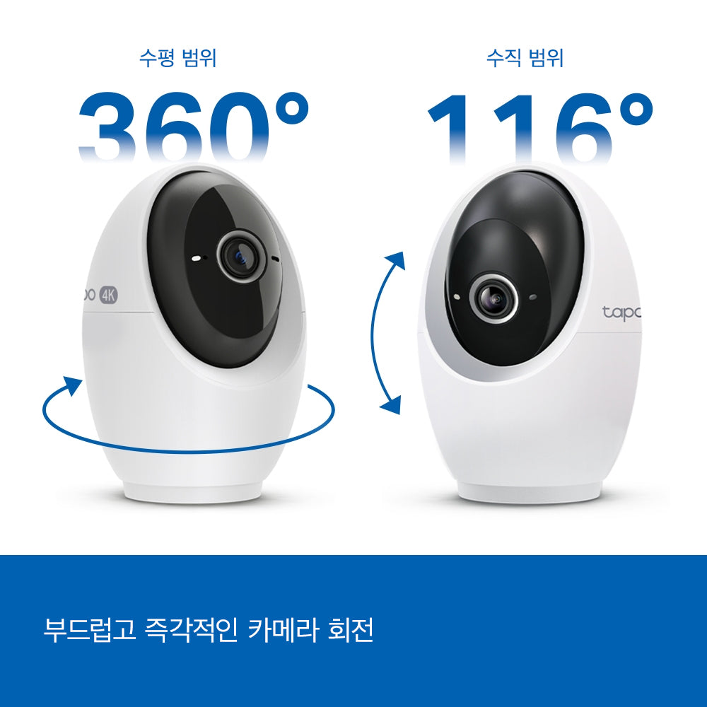 - 회전형: 360º 수평 범위와 146º 수직 범위로 각도를 조절해 더 넓은 영역을 모니터링할 수 있습니다.