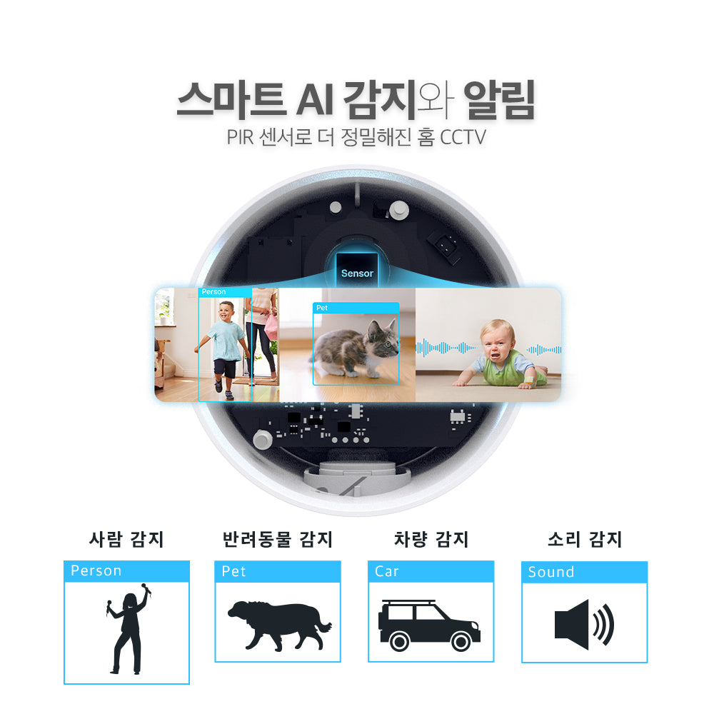 - 스마트 AI 감지 및 알림: 사람을 식별하고, 아기 울음소리를 감지하여 필요에 따라 사용자에게 알립니다.
