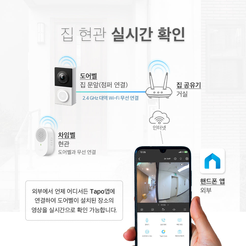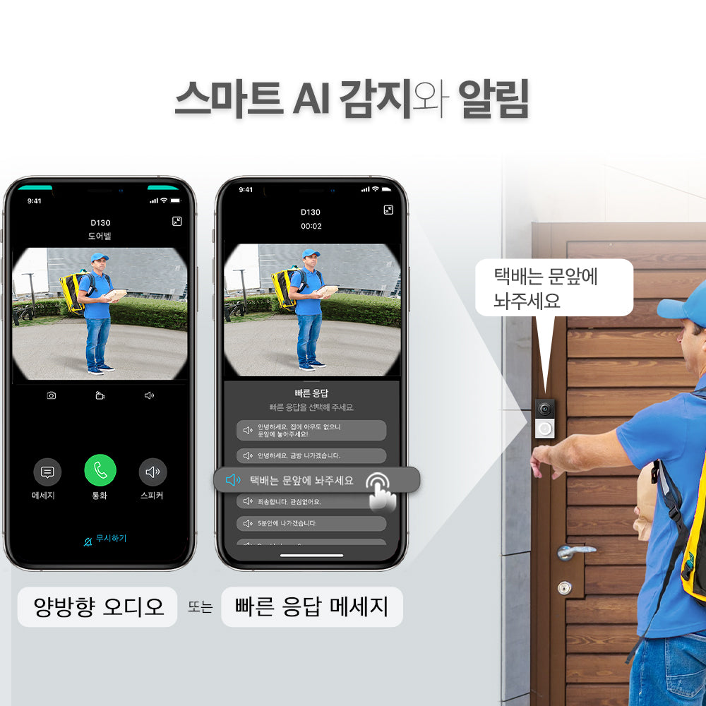 - 양방향 오디오: 내장 마이크와 스피커로 방문객과 원활하게 소통할 수 있습니다.