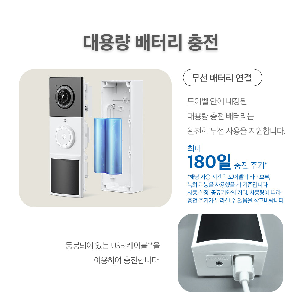 - 양방향 오디오: 내장 마이크와 스피커로 방문객과 원활하게 소통할 수 있습니다.