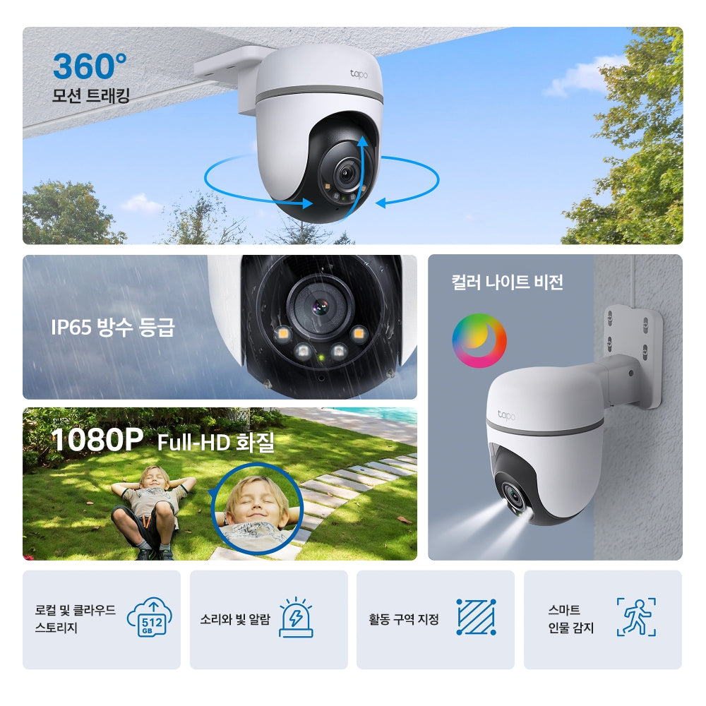 - 로컬 및 클라우드 스토리지: 녹화 영상을 microSD 카드(최대 512 GB)나 Tapo Care 클라우드 스토리지에 저장할 수 있습니다.