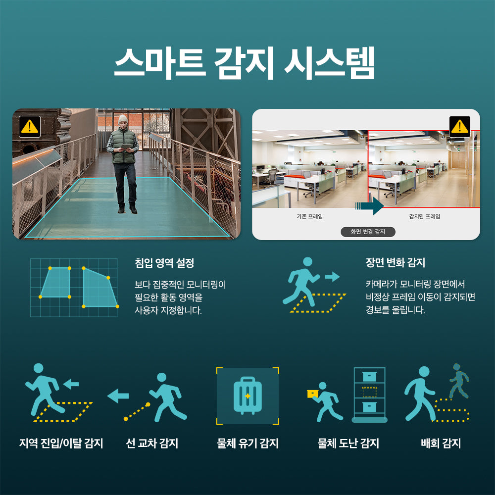 - 소리 및 조명 경보: 소리와 조명 경보로 주의를 끌어 침입자를 쫓아냅니다.