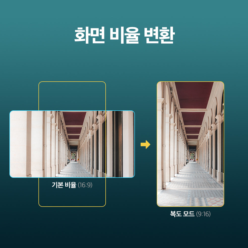 - 다양한 설치 방법을 지원하는 컴팩트 디자인: 똑바로 세우거나 뒤집어도 쓸 수 있고, 책상 거치, 벽면 설치, 천장 설치, 기둥 설치를 지원합니다.
