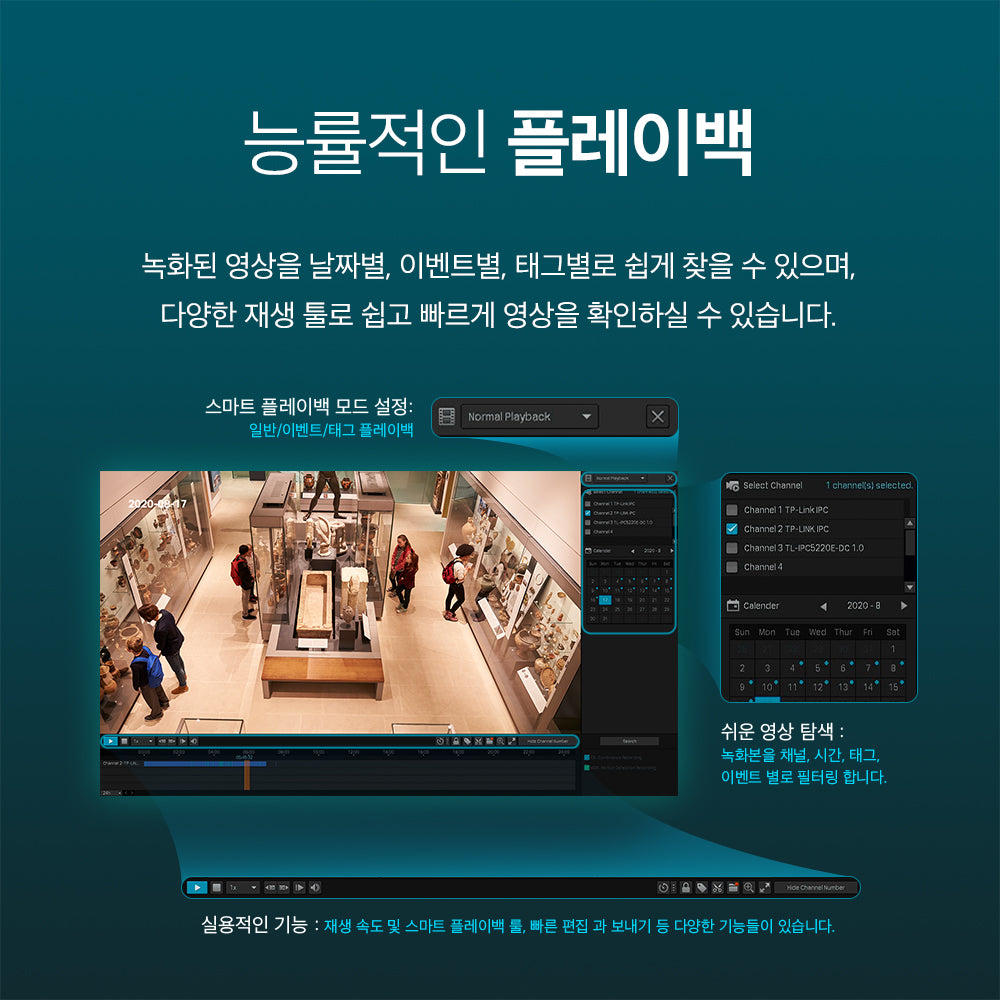 - 다양한 설치 방법을 지원하는 컴팩트 디자인: 똑바로 세우거나 뒤집어도 쓸 수 있고, 책상 거치, 벽면 설치, 천장 설치, 기둥 설치를 지원합니다.