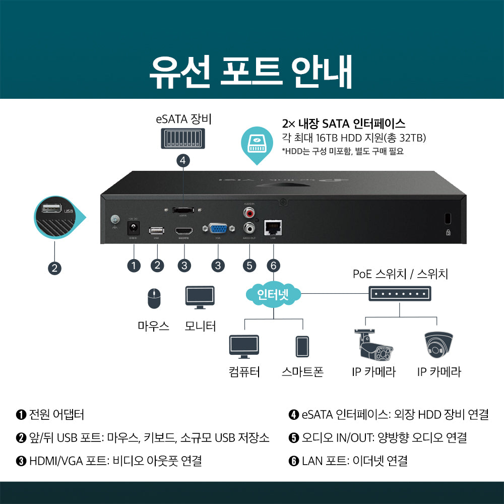 - 다양한 설치 방법을 지원하는 컴팩트 디자인: 똑바로 세우거나 뒤집어도 쓸 수 있고, 책상 거치, 벽면 설치, 천장 설치, 기둥 설치를 지원합니다.